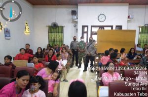 Seperti yang dilakukan Serka Pracoyo dan Bhabinkamtimas Polsek Tebo Ilir Keduanya melakukan pengamanan ibadah di Gereja GPDI, Dusun Kemantan Kelurahan Sungai Bengkal, Kecamatan Tebo Ilir, Kabupaten Tebo, Minggu (12/12/2021).